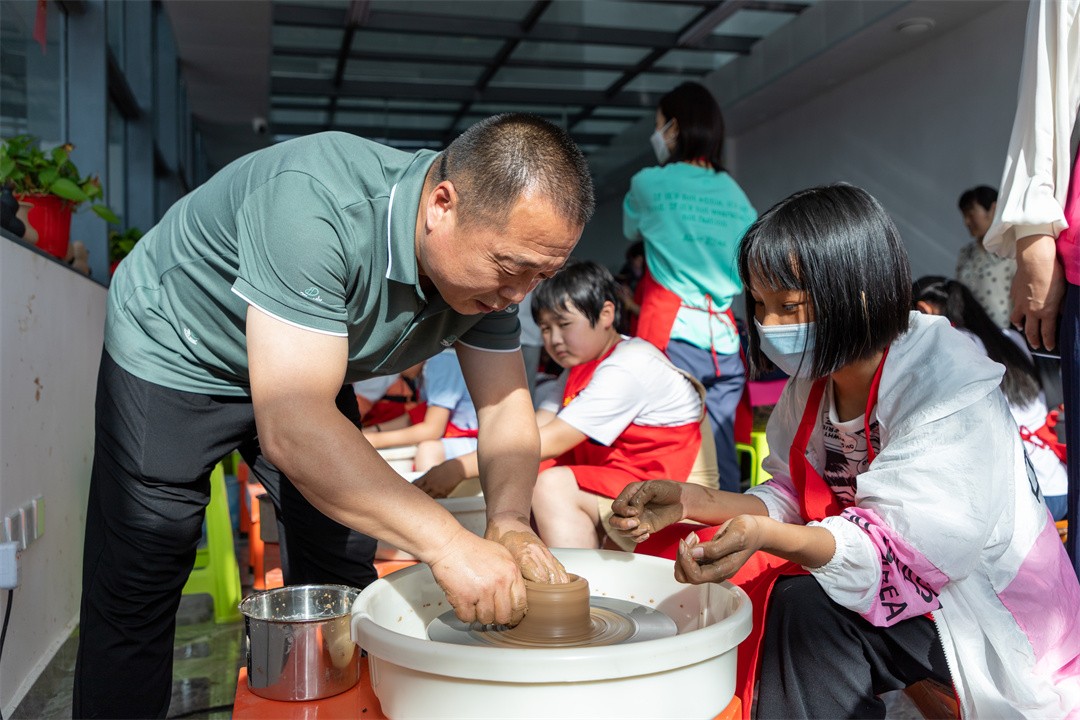 將包好的粽子交給廚房以后,孩子們一起來到龍格黑陶藝術(shù)研究院。為讓孩子們更好地了解非遺文化的重要性、體驗非遺文化的魅力、享受制陶的樂趣,特邀請了市級非物質(zhì)文化遺產(chǎn)龍山黑陶制作技藝代表性傳承人徐慶增為孩子們講授黑陶文化歷史、教授黑陶器具制作技藝、傳承黑陶非遺文化。